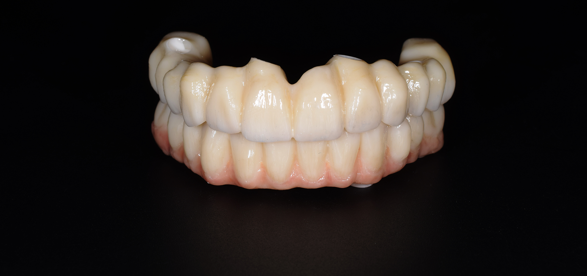 We provide a range of high-performance options, including zirconia bridges, zirconia sleeves on titanium bars, and GCam composite bridges. Material selection depends on functional requirements, aesthetic expectations, and case complexity. We are happy to discuss the most appropriate solution based on your clinical objectives.